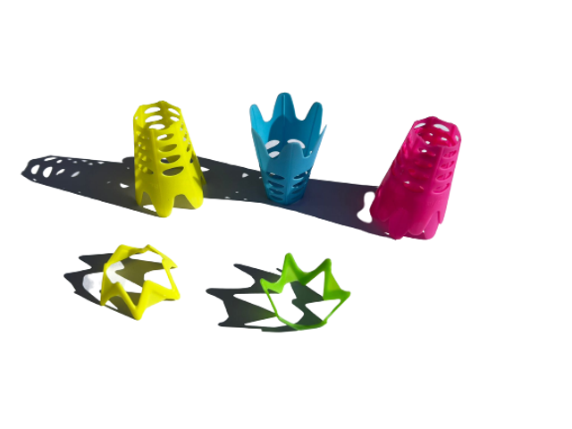 Die AERO Tees sind sowohl für Abschläge mit dem Driver als auch mit Fairwayhölzern und Eisen geeignet und unterstützen die Dynamik im Treffmoment. Die langen Tees können je nach Bedarf von 4,5 cm bis auf die gewünschte Höhe gekürzt werden. Die kurzen Tees können für zwei verschiedene Höhen genutzt werden: Die Höhe von 1,3 cm bietet sich ideal für Fairwayhölzer an, die Höhe von 0,6 cm ist hingegen für Abschläge mit dem Eisen geeignet. Die AiroTees eignen sich für das Spiel auf hartem Boden und für das Spiel auf Matten. Die Neonfarben sorgen für eine besonders coole Optik.
